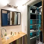 Separat toalett och dusch finns i ett privat badrum på lägenheten.